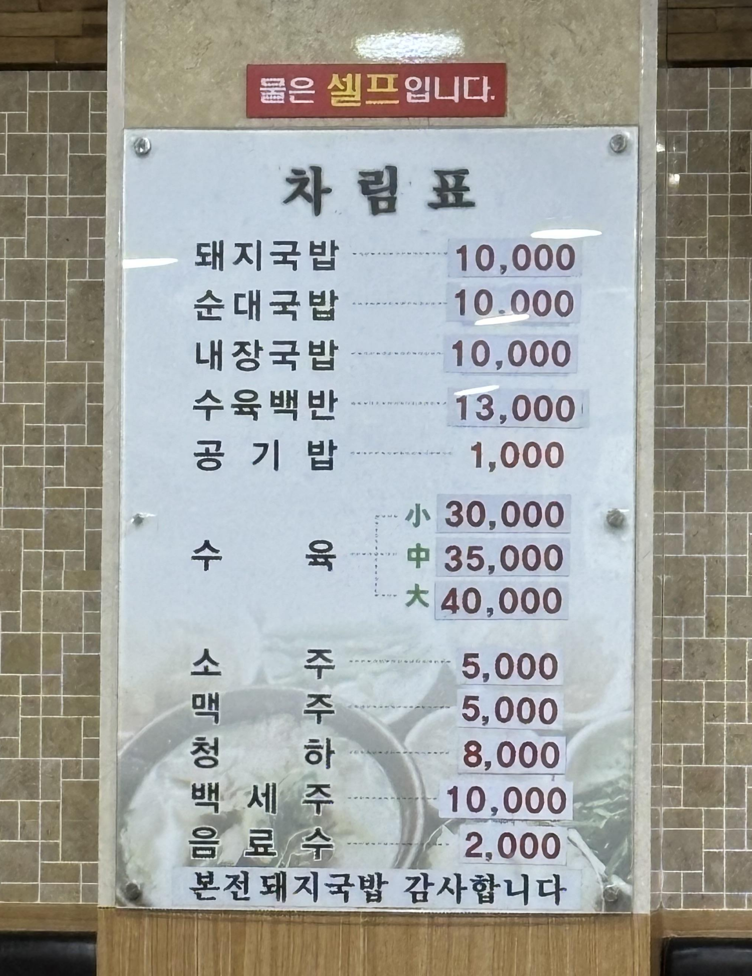 - 대표메뉴 : 돼지국밥, 순대국밥, 수육