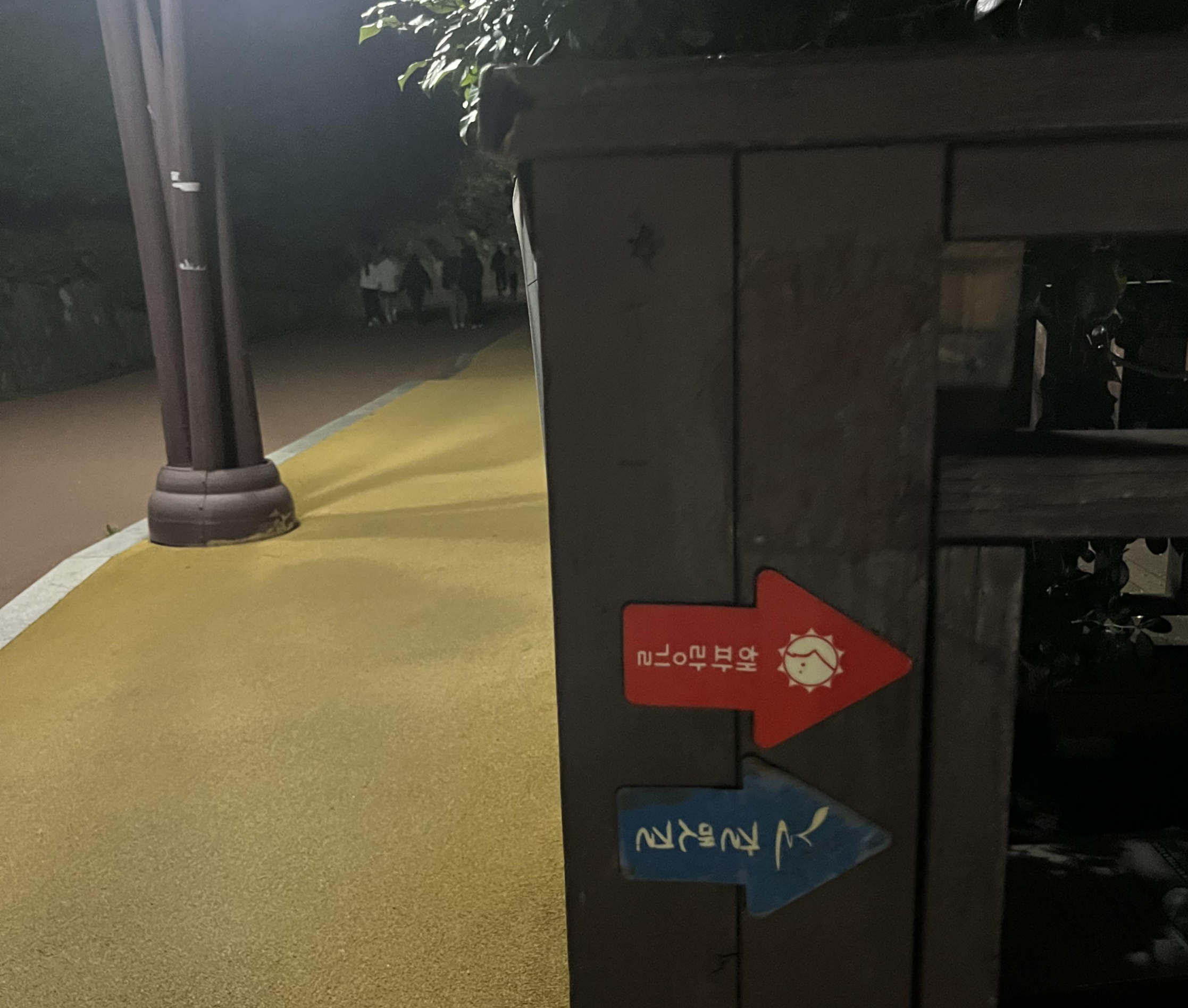 참으로 올 때 마다 감탄을 부르는 야경입니다. 동백섬 밤산책은 이 광경을 보러 온다고 해도 과언이 아니지요. 매일 새벽에 볼 수 있는 해돋이도 좋고 한낮의 상쾌한 산책도 좋지만, 동백섬은 역시 야경입니다. 하얀 등대까지 가면 대략 동백섬 산책로를 절반 정도 오신 겁니다. 그대로 산책로를 따라서 동백섬을 빠져나갈 수도 있지만, 동백섬이 처음이시라면 해파랑길을 추천합니다. 잘 정돈된 나무데크길이 동백섬 측면을 따라 이어지는데요. 바닷소리를 만끽하며 걷기 운동을 할 수 있게 해 주거든요.