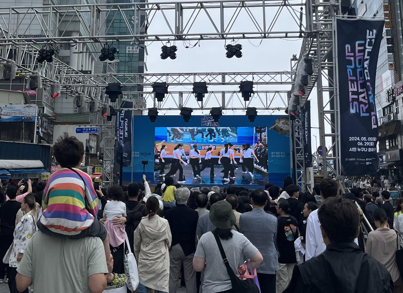 올해 모래축제 인파는 역대급으로 많았습니다. 저도 상황을 잘 모르고 예년처럼 어슬렁거리며 해운대 메인 거리로 들어섰는데요. 왠지 분위기가 심상치 않았습니다. 해운대 해변으로 향하는 넓은 메인 거리에는 플리마켓과 소형의 공연장이 설치되어 있었는데, 많은 인파로 접근조차 쉽지 않은 수준이었죠. 마침 공연장에서는 댄스공연이 있었는데요. 열정적인 군무에 관람객들의 환호가 터집니다.