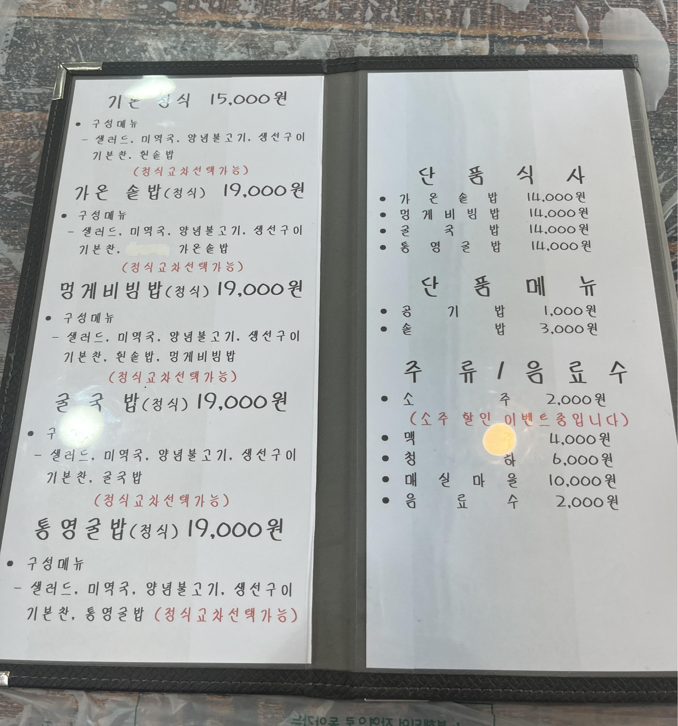 · 대표메뉴 : 가온솥밥, 멍게비빔밥